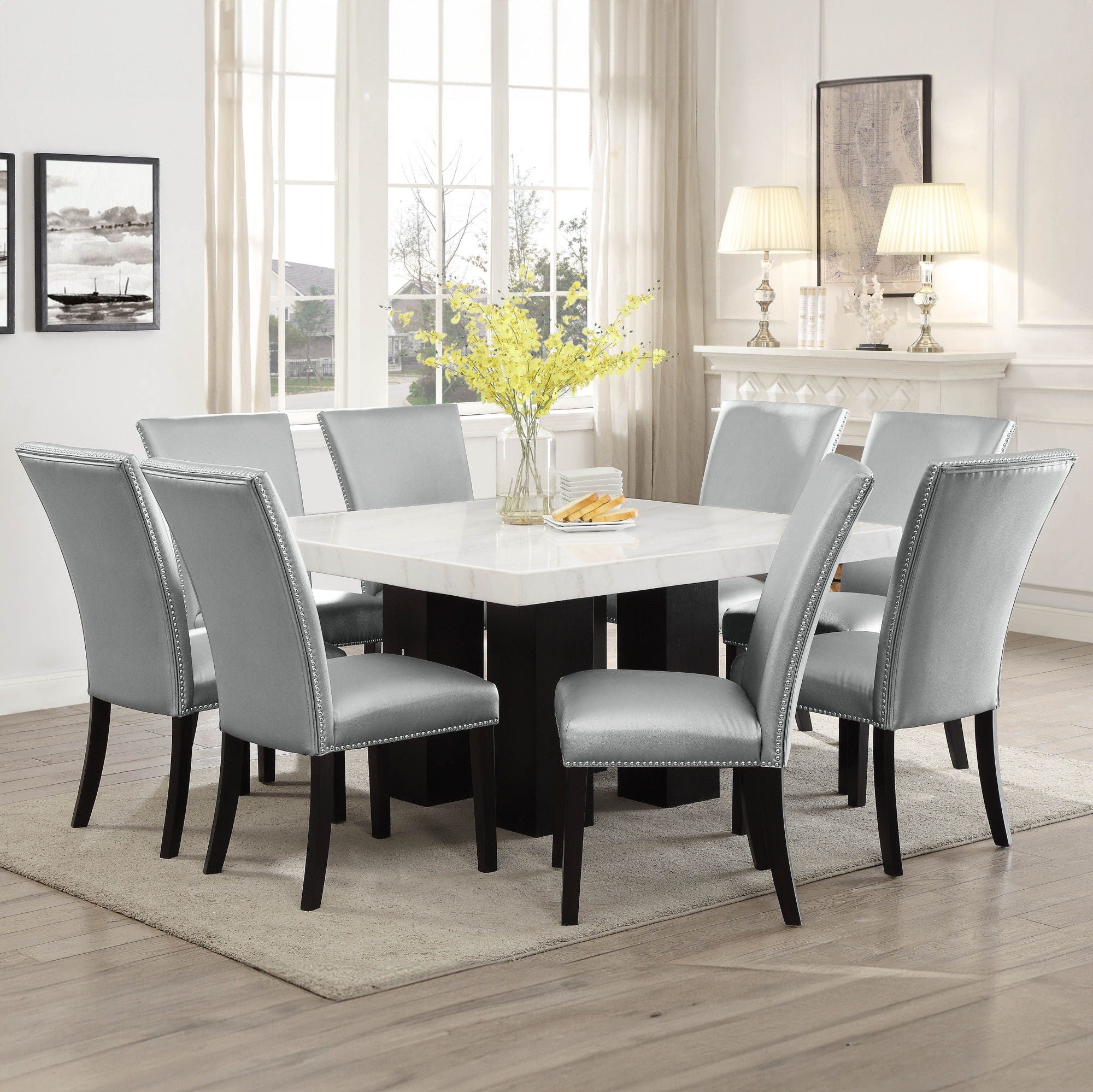 Camila -9 Piece Dining Set With Square Table - Pearl Silver - Pearl Silver