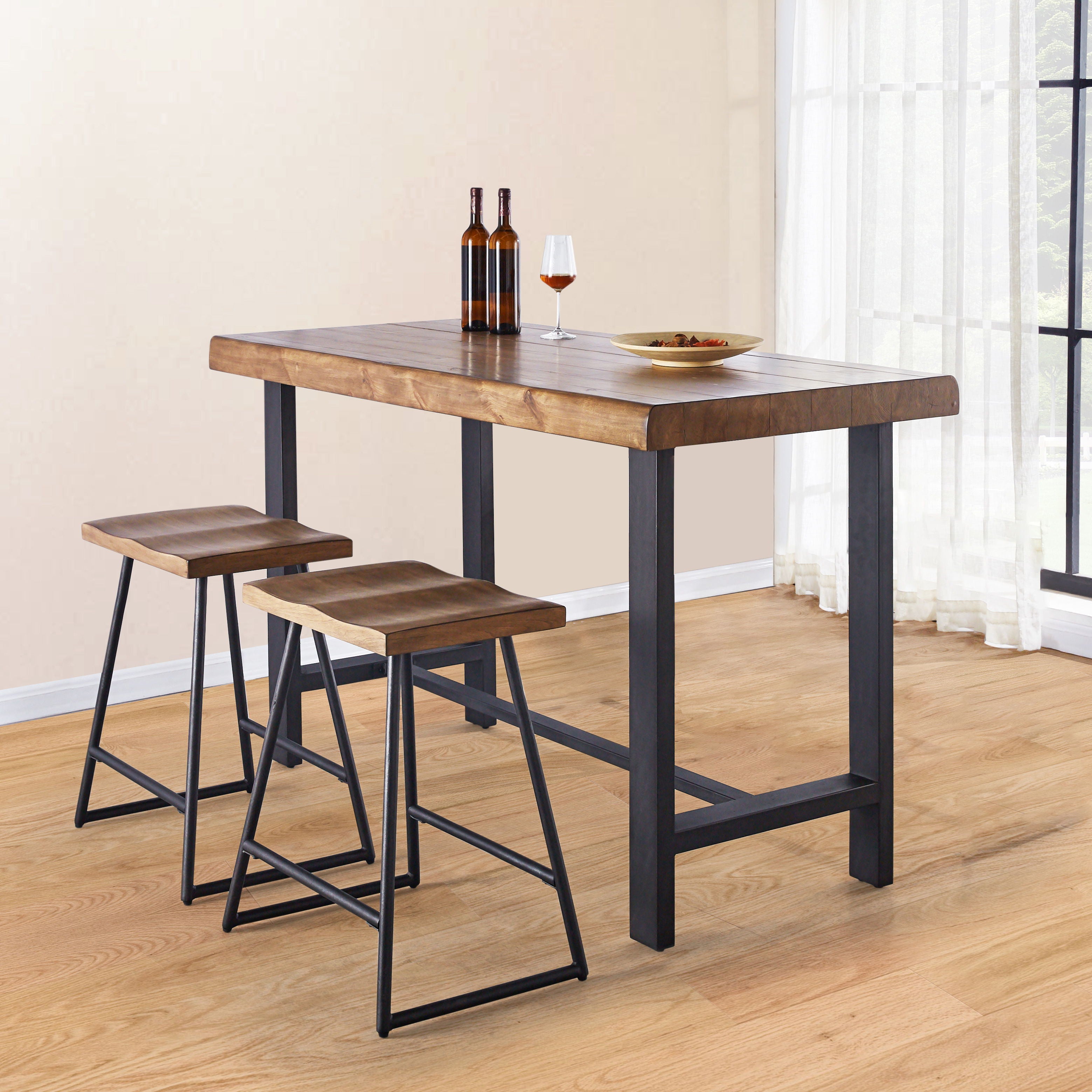 You'll love to come to dinner with this counter height dining table from Landon! The transitionally styled mixed media presents a substantial look in a medium sized dining package. The hefty table top features birch veneers in a natural finish and is paired with a weighty iron base. The stools have a shaped wood seat that features a natural finish and is paired with a sturdy iron base for a modern, rustic look.
