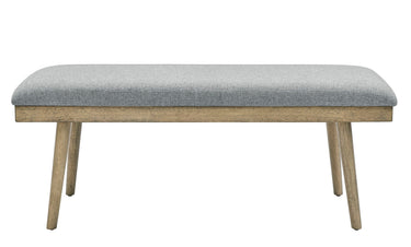 Experience comfort and style with the Vida Dining Bench. Featuring tubular canted solid wood legs and a burnished blonde finish, this bench blends mid-century modern and Scandinavian design, creating a unique and stylish look. Whether for your dining room, entryway, living room or bedroom, this bench offers unparalleled comfort and sophistication.